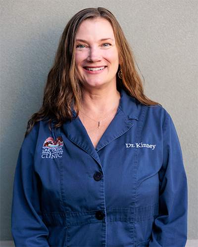 Dr. Kinney grew up in Phoenix, the youngest of four children, and at the age of four informed her mother, after visiting her own doctor, that she would be the first doctor for animals. It was all success from that point forward. Determined to excel amongst her older siblings, she skipped third grade and had barely turned 17 when she started attending college at the University of Arizona. She then completed her undergraduate requirements in three years and traveled to Washington State University where she earned her Doctorate of Veterinary Medicine. She stayed an additional year after her doctorate to complete an internship in anesthesiology where she studied this subject at a deep level and had an opportunity to work with a variety of species.