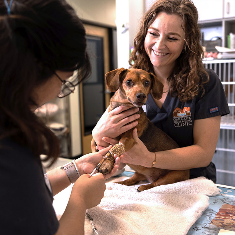 Let Oak Creek Small Animal Clinic provide professional care for your puppy or dog. A physical exam is the smartest and easiest way to keep your dog healthy. Wellness exams allow our veterinarians to detect problems and diseases that might go undiscovered otherwise, including heart murmurs, tumors, enlarged organs, cataracts, ear infections, ear mites, dental disease, skin issues and allergies.